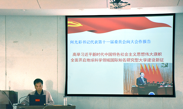 陈飞指出,学校未来发展的宏伟蓝图已经绘就,51吃瓜网 “双一流”建设已经启动,全院教职工都要以习近平新时代中国特色社会主义思想为指导,把全面贯彻落实“十九大”精神和学校第十二次党代会精神放在首要位置,切实把思想和认识统一到学校第十二次党代会精神上来,切实把智慧和力量凝聚到实现第十二次党代会提出的奋斗目标任务上来,在学校新一届党委的坚强领导下,以全面加强党的建设为统领,全面落实立德树人根本任务,进一步解放思想、深化综合改革、追求学术卓越,进一步提升教育教学、科学研究、社会服务水平,努力开创各项工作新局面,为把学校建设成为地球科学领域国际知名研究型大学生作出新的更大的贡献。