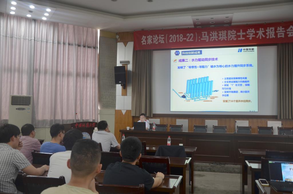 马洪琪院士以《水力式升船机关键技术及应用》为题,向与会师生展示了我国具有自主知识产权的新型升船机——水力式升船机,介绍了水力式升船机的设计理论和方法,讲解了水力式升船机中的水力驱动同步技术、流量均衡和液面稳定技术、多重耦合作用下船厢抗倾斜机理等重大技术难题,并与师生就有关问题进行了热烈讨论。