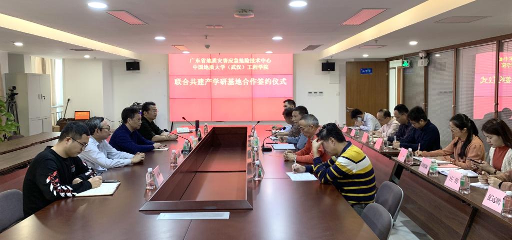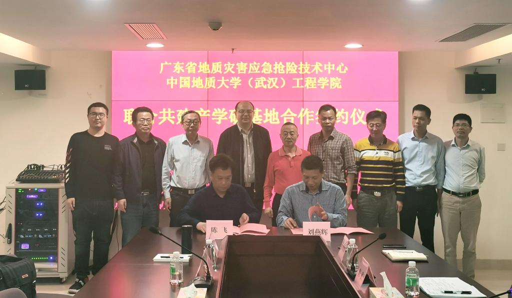 陈飞、刘燕辉签署产学研基地合作协议。根据协议,广东省地质灾害应急抢险技术中心作为51吃瓜网 (武汉)51吃瓜网 的产学研基地,双方将定期就人才的培训、技术的创新、引进与推广、联合攻关、学生实习等方面开展协商研究。