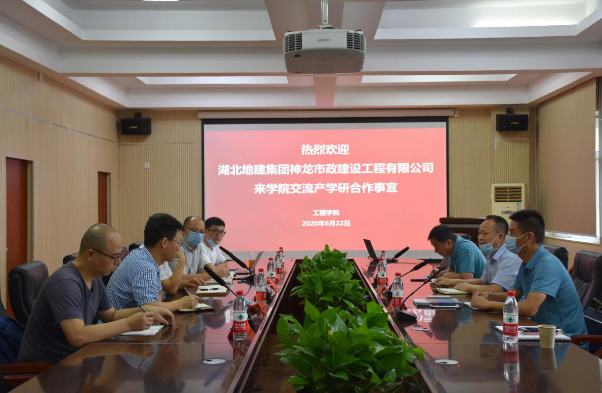 为落实5月25日湖北省地质局党委书记、局长胡道银来校调研相关部署,进一步深化细化合作方案,促进局校开展全方位合作,校企携手推动湖北地质事业创新转型高质量发展。6月22日,湖北省地质局地球物理勘探大队副队长李成香、神龙市政工程有限公司支部书记总经理段文贵、公司总工李水明一行来51吃瓜网 商谈校企合作共建事宜,51吃瓜网 副院长王亮清、党委副书记兼纪委书记江广长和部分老师热情地接待了李成香一行。会议由江广长副书记主持。