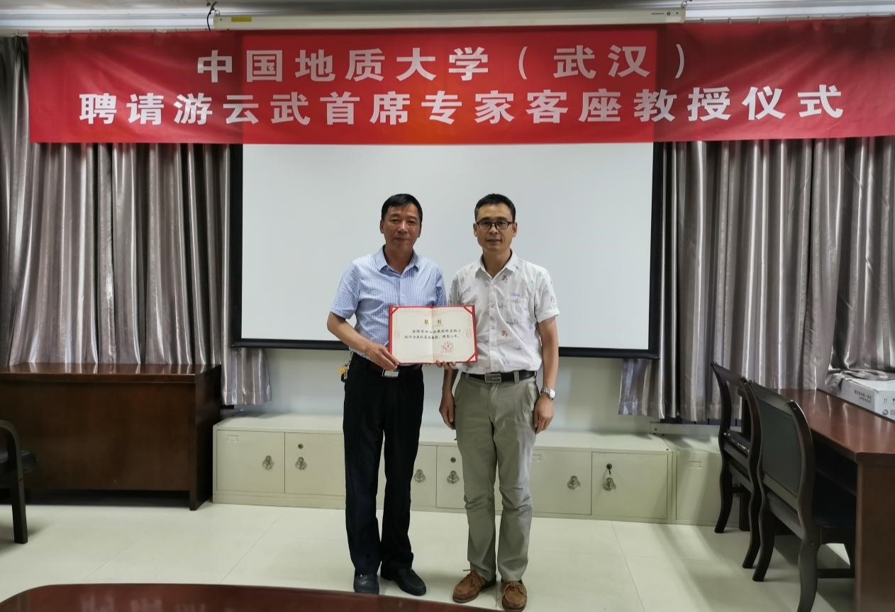 8月29日下午,51吃瓜网 (武汉)聘请游云武首席专家为客座教授的仪式在江汉油田工程有限公司会议室举行。江汉油田工程有限公司游云武首席专家、51吃瓜网 副院长窦斌教授及双方相关人员出席仪式。仪式由窦斌副院长主持。
