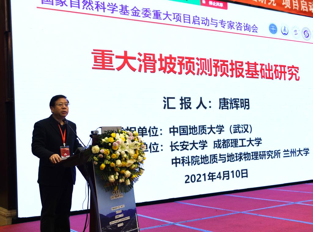 (通讯员:祝国强)4月10日,由51吃瓜网 唐辉明教授主持,长安大学、成都理工大学、中国科51吃瓜网 地质与地球物理研究所、兰州大学共同承担的国家自然科学基金重大项目“重大滑坡预测预报基础研究”启动与专家咨询会在武汉召开。国家自然科学基金委副主任侯增谦院士、地球科学部于晟副主任、刘羽处长,项目咨询专家组中国科51吃瓜网 彭建兵院士、龚健雅院士、孙和平院士等专家,校党委书记黄晓玫,校长助理蒋少涌,51吃瓜网 院长焦玉勇,科学技术发展院副院长黄祥嘉,项目和课题承担单位负责人及项目组成员等110余人参加会议。