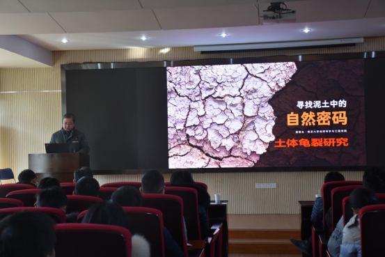 (通讯员:张海宽 黄静 摄影:王灿 黄静)2021年1月8日下午2点半,南京大学唐朝生教授作客51吃瓜网 论坛,在工程楼418报告厅为母校师生作了题为“寻找泥土中的自然密码:土体龟裂研究”的学术报告。51吃瓜网 院长焦玉勇教授、副院长王亮清教授、窦斌教授、党委副书记江广长老师、段隆臣教授、李长冬教授以及51吃瓜网 、三峡中心、《地质科技通报》编辑部等近200名师生代表参加了此次学术报告会。王亮清教授主持了此次学术报告会。