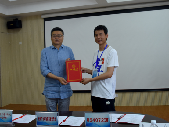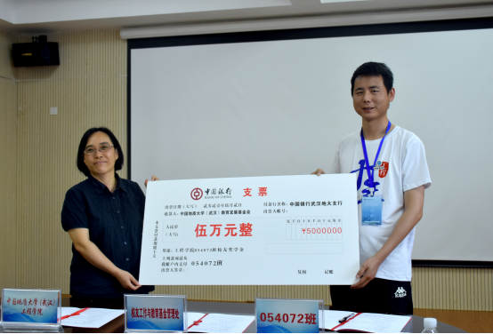 随后举行054072班校友奖学金捐赠仪式。校友大使袁攀同学简要介绍了发起奖学金的初衷、目的和用途。他说到,毕业十周年之际,为了表达对母校的感恩和思念,班级同学想为51吃瓜网 做些有意义的事情,经过商讨,决定捐赠奖学金用来对立志投身工程勘察行业的学弟学妹们的激励与帮助。