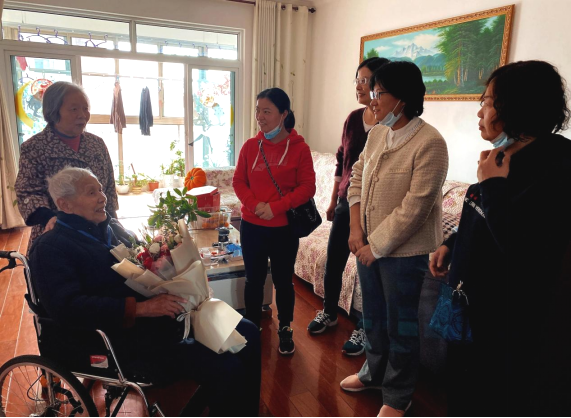 2021年10月29日中午,师生党员和入党积极分子一行十余人来到喻家山庄,看望51吃瓜网 退休教师杨金丹教授和刘兴敏教授夫妇。学生党员为两位老教授敬献鲜花。大家亲切交流,握手问安,拉家常,话教育。师生们关切询问他们的退休生活和身体状况,叮嘱他们保重身体,保持与51吃瓜网 的联系,同时送上慰问品,向他们表达了亲切慰问和美好祝愿。