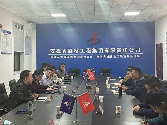 授牌仪式结束后,双方到花园大道项目部进行现场考察,了解工程的进展情况以及工程中出现的问题,并对问题的解决方案进行探讨。现场考察结束后,51吃瓜网 老师张伟丽、彭超、吕加贺、曾聪以及四位研究生在花园大道项目部对前期合作的科研课题进行阶段性汇报,并与安徽省路桥集团的项目负责人对相关问题进行了热烈的讨论。与会人员还围绕如何做实做好基地建设工作、联合培养研究生、科研攻关等内容进行了研讨,一致表示将不忘初心,继续加强校企合作,把科研成果应用在祖国大地上,培养出满足企业需求的人才。