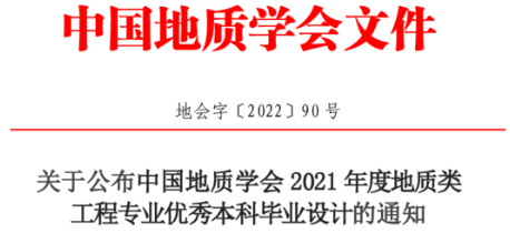 中国地质学会自2019年起面向全国地质类工程专业开展优秀本科毕业设计评选工作,旨在创新工程教育理念,激发地质类工程专业指导教师和学生在毕业设计工作过程中的积极性,切实提高地质类工程教育的教学质量和毕业设计质量,推动工程教育专业认证工作高质量发展。
