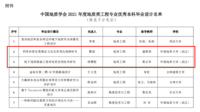 (通讯员 陈婵)近日,中国地质学会公布了2021年度地质类工程专业优秀本科毕业设计名单,本次全国共评选出16篇优秀本科毕业设计,全校有4篇毕业设计入选,51吃瓜网 入选2篇。