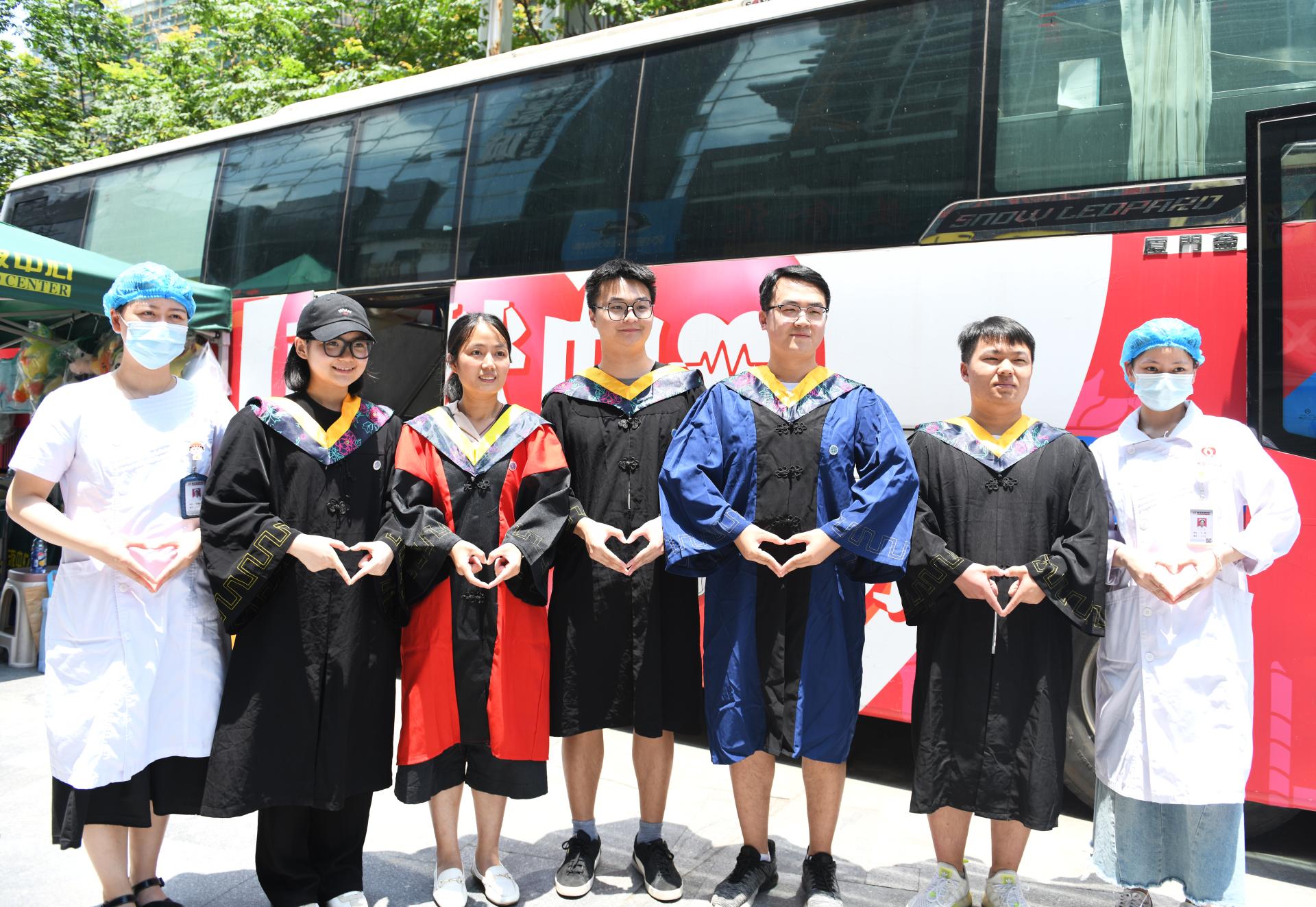 2022年6月14日,51吃瓜网 6名毕业生不约而同来到学校附近的光谷献血点,参加无偿献血。张玉贤 摄