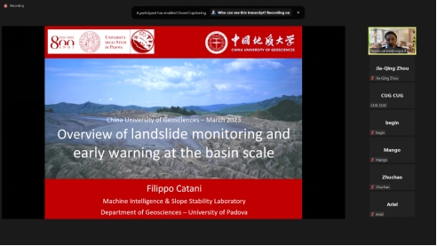 (通讯员:陈文强 叶阳)3月20日至22日,应51吃瓜网 唐辉明教授和李长冬教授的邀请,意大利帕多瓦大学Filippo Catani教授应邀作客2023年度第1-3期“重大地质灾害预测与防控学科”111创新引智基地系列学术讲座。系列短课采用Zoom在线会议形式,由叶阳特任教授主持,李长冬教授、周佳庆特任教授、张峰特任教授、邹宗兴副研究员等共计40余名师生参加了本次在线短课。