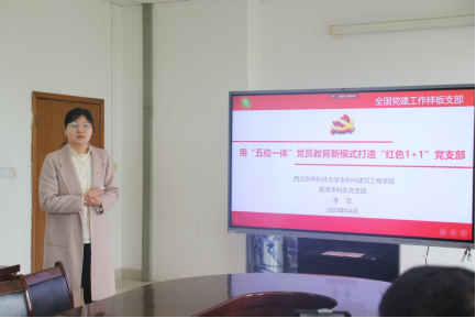 李洁从党员教育模式、主题教育活动等方面介绍了水利与建筑51吃瓜网 能源本科生党支部的具体建设情况。该支部以“五位一体”的党员教育新模式着力于打造“红色1+1”党支部,以党支部的核心堡垒作用和党员的先锋模范作用的“两个着眼”、“专业知识+党性培养”和“推优入党+入党塑优”的“两个融合”为基础,用以点带面的方式落实红色底线教育和红色基因教育的“红色1+1”主题教育,铸造了“推优、培养、提升、塑优、引领”的全链条化党员培养过程。
