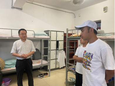 6日下午,焦玉勇、高晓东一行到学生寝室进行走访慰问。焦玉勇和高晓东和学生们进行了亲切交谈,叮嘱同学们在野外实习期间注意安全,照顾好身体。鼓励同学们发扬地大校训精神,敢于吃苦,磨砺意志,不断增强专业实力。