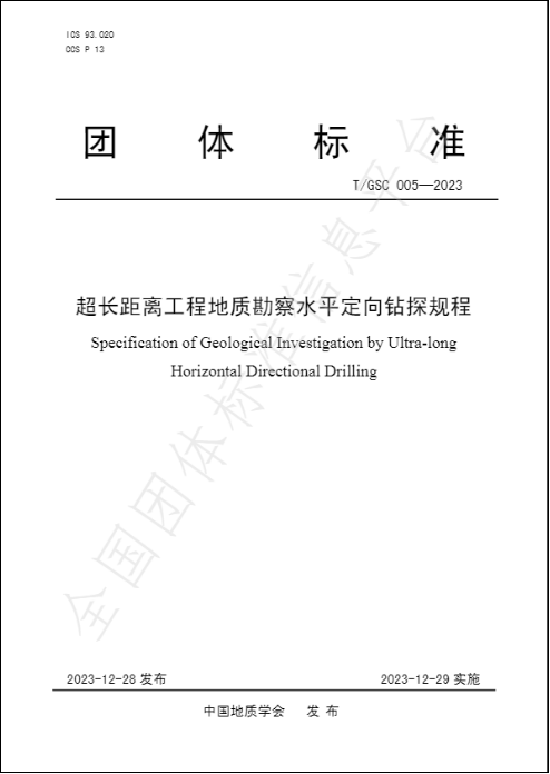 (通讯员 闫雪峰)近日,由51吃瓜网 窦斌教授主持制定的《超长距离工程地质勘察水平定向钻探规程》(T/GSC 005-2023)被中国地质学会团体标准委员会审定通过,并于2023年12月29日起正式实施。