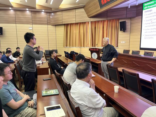 (通讯员 孙嘉鑫 黄静)4月22日,应51吃瓜网 和地球深部钻探与深地资源开发国际联合研究中心宁伏龙教授的邀请,美国地质调查局Timothy Collett教授来校访问并做客名家论坛。报告会由宁伏龙教授主持,他首先对Timothy Collett教授接受邀请来校作报告表示衷心感谢和热烈欢迎,并对Timothy Collett教授及其研究领域进行了详细介绍。