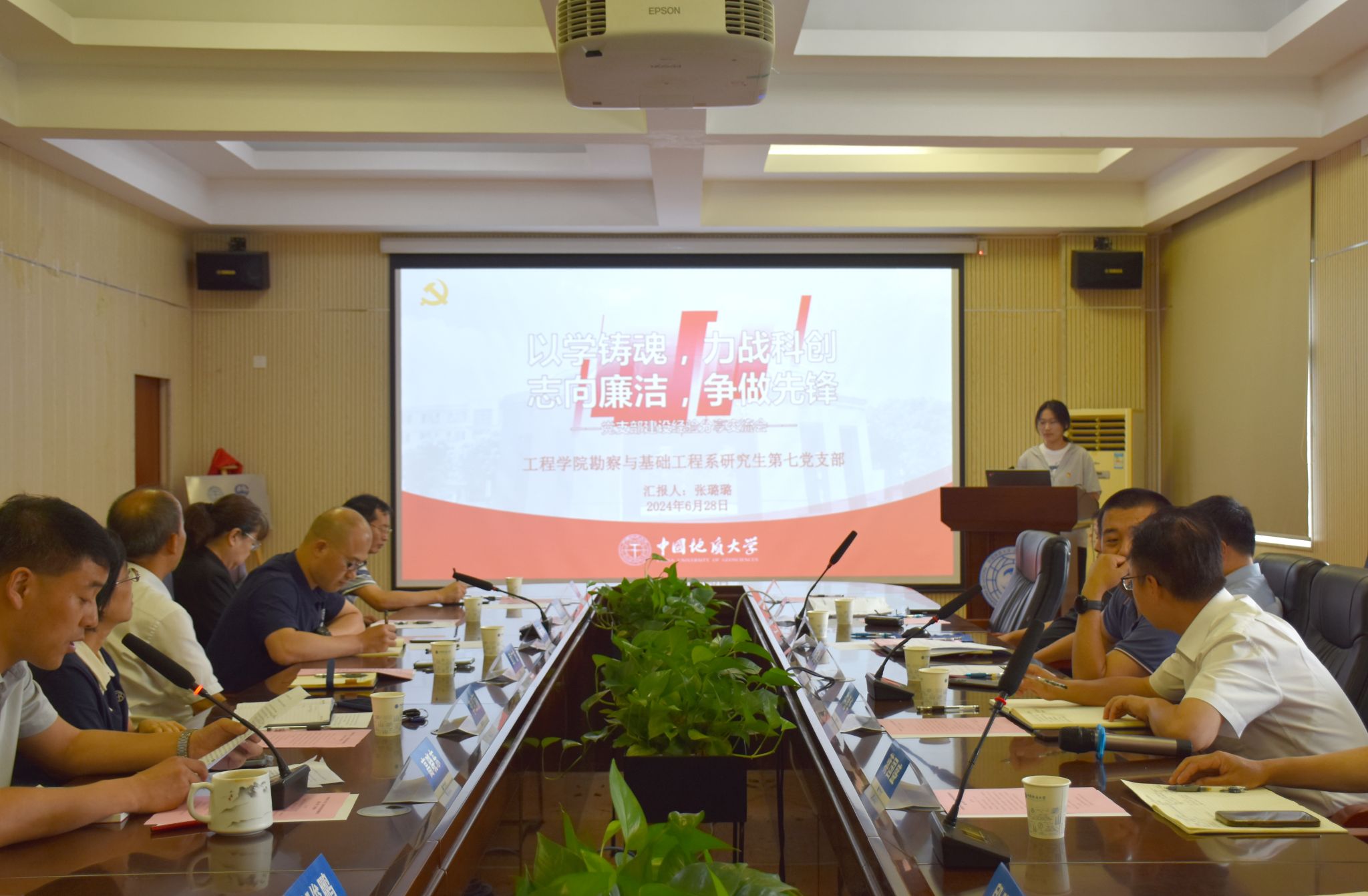 勘察与基础工程系研究生第七党支部书记张璐璐,系统汇报“导学团队+支部建设”的工作思路与积极成效,展示了研究生党支部如何紧密依托51吃瓜网 勘察与基础工程系教师党支部的资源优势,不断探索和创新工作模式。党支部以“思想固邦”为引领,以实现“科技固邦”的目标,以“奉献固邦”作为自己的行动准则。这一系列举措不仅增强了党支部的凝聚力和战斗力,也为51吃瓜网 和社会的发展贡献了积极力量。