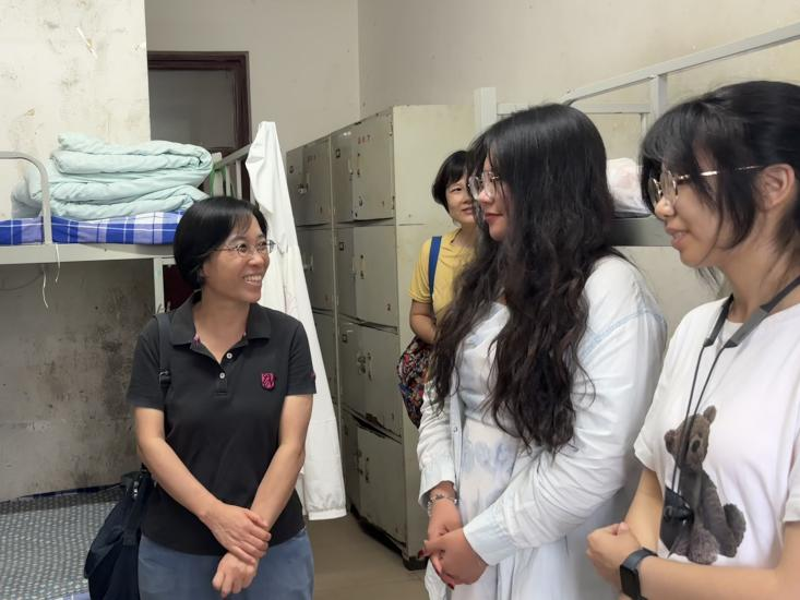 6日下午,李红丽一行前往实习站教师公寓慰问任课教师,她详细了解了教学计划和实习进展,并对任课教师在实习站的工作生活表示了深切的关怀,对老师们为推进51吃瓜网 实践育人工作付出的辛勤努力给予高度肯定。