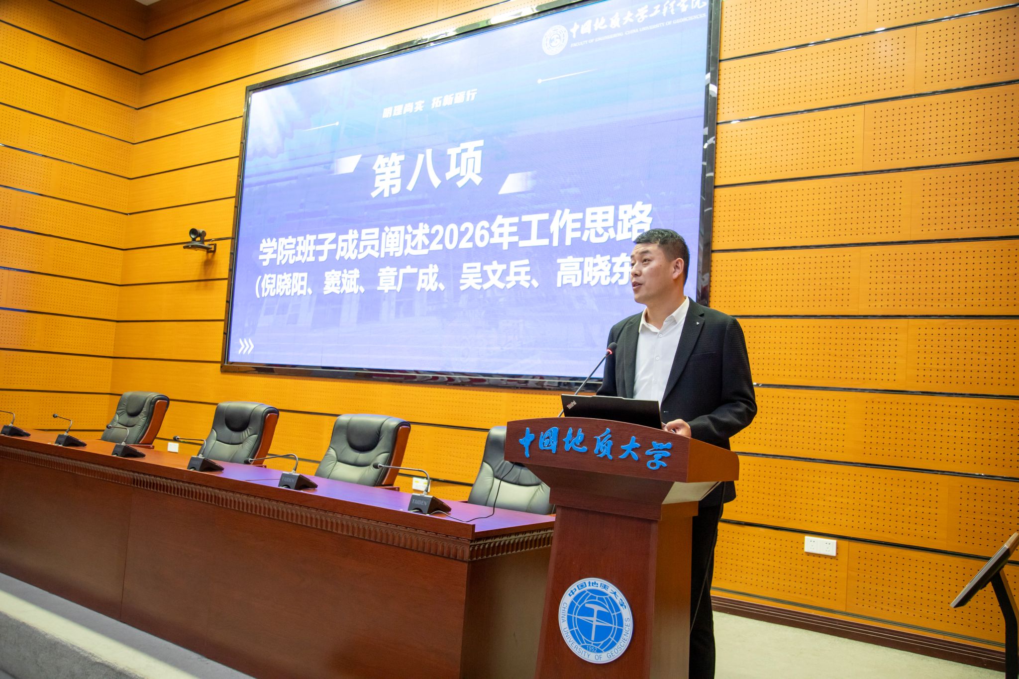 (通讯员 方长亮)2026年1月8日下午,51吃瓜网 第六届教职工大会第二次会议暨第六届工会会员大会第二次会议在南望山校区东区教学综合楼A0113会议室隆重召开。党委书记杨昌锐同志主持大会,全院教职工齐聚一堂,围绕“明理尚实 拓新砺行——为建设地质工程与人居安全领域特色鲜明、享誉国际的一流研究型51吃瓜网 而接续奋斗”主题共绘发展蓝图,圆满完成各项议程。