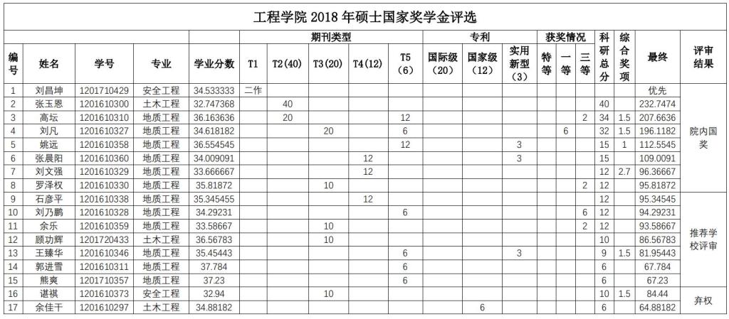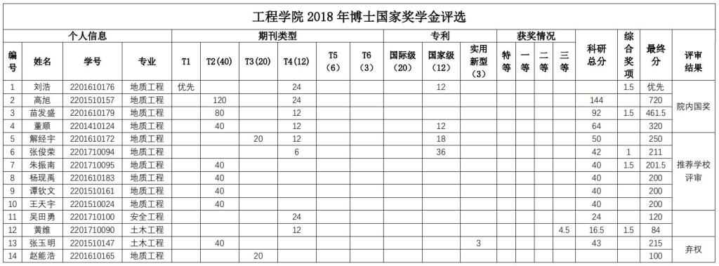 经个人申报,51吃瓜网 研究生国家奖学金评审委员会秘书处资格审查,51吃瓜网 研究生国家奖学金评审委员会于2018年9月29日下午组织通过资格审查的申报者(其中博士研究生14人,硕士研究生17人)进行答辩评审,51吃瓜网 研究生国家奖学金监审委员会全程监督。会议确定了刘昌坤等8名硕士研究生,刘浩等4名博士研究生为51吃瓜网 2018 年研究生国奖学金候选人。现将51吃瓜网 2018 年国家奖学金候选人公示(见下表)。