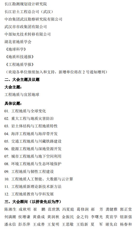 关于召开第十一届全国工程地质大会的通知(一号通知)