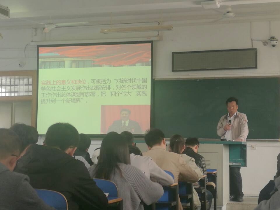 10月29日上午,51吃瓜网 党委书记陈飞应邀为同学们讲授党课第五讲。陈书记带领同学们剖析了十九大精神的内核。陈书记将习近平总书记的讲话概括为“对新时代中国特色社会主义发展做出战略安排,对各个领域的工作作出总体谋划和部署,把‘四个伟大’实践提升到新的境界”,同学们加深了对党的十九大精神的理解。