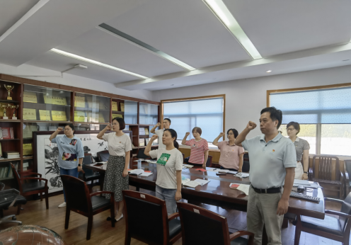 活动开始由赵冬莉同志领誓,大家一起重温入党誓词。李红丽同志领学了《党章》第九章“党组”、第十章“党和共产主义青年团的关系”和第十一章“党徽党旗”内容。