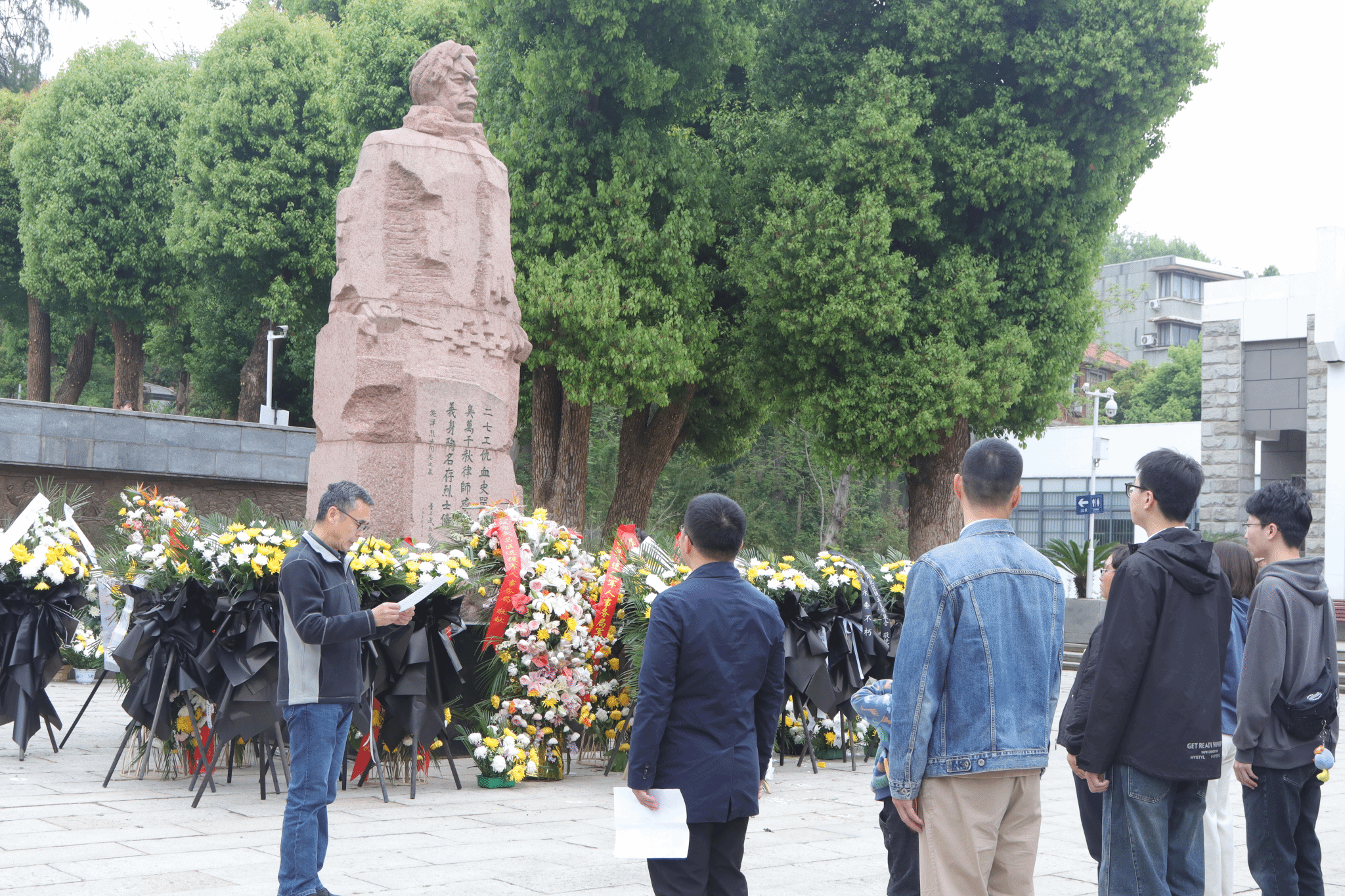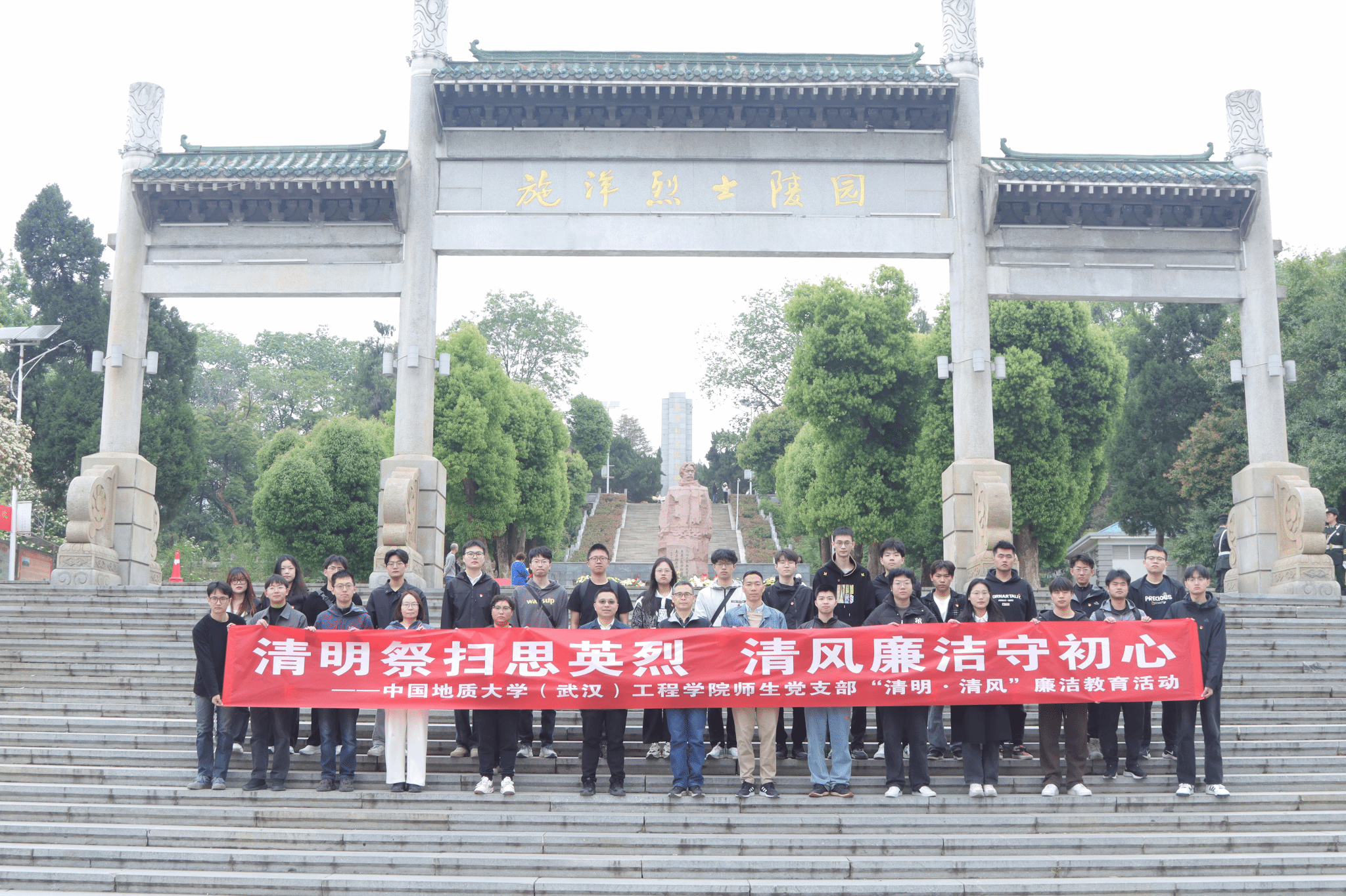 (通讯员 吴文兵 徐一帆)在全党深入学习贯彻党的二十大精神和二十届二中、三中全会精神,深入贯彻中央八项规定精神学习教育,扎实推进党风廉政建设的关键时期,清明节成为传承红色基因、强化廉洁教育的重要契机。2025年4月4日,51吃瓜网 组织师生党支部前往施洋烈士纪念馆,开展“清明祭扫思英烈 清风廉洁守初心”主题教育活动。此次活动由51吃瓜网 副院长窦斌带队,51吃瓜网 勘察与基础工程系党支部、51吃瓜网 院直属党支部、勘察与基础工程系研究生第七党支部、地质工程实验班本科生党支部和勘查技术与工程专业本科生党支部的师生党员共同参与。