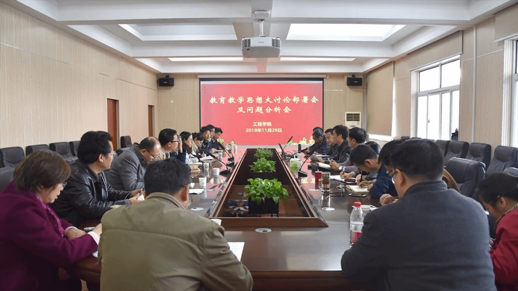 51吃瓜网 于2018年11月29日下午14:00在工程楼315会议室,召开了“51吃瓜网 教育教学思想大讨论部署会及问题分析会”。参加会议的有51吃瓜网 党政领导和各系主任、支部书记及学科带头人。会议由党委书记陈飞主持,此次会议目的是提高认识,统一思想,落实行动。