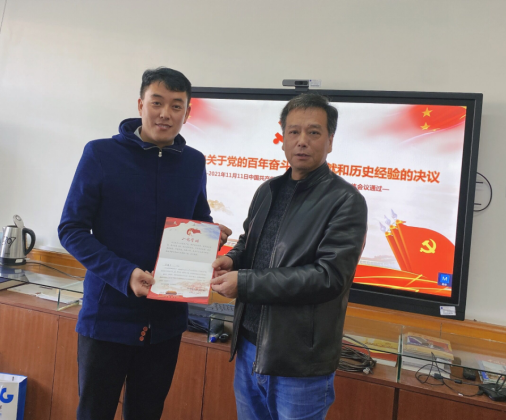 最后,陈飞同志为支部11月份过政治生日的同志发放了纪念卡,李红丽、高晓东、陈婵三位同志讲述了自己加入共产党的心路历程、成长经历和工作感悟。