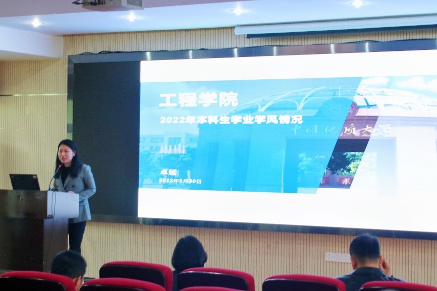 辅导员卓越老师介绍全院本科生学业学风情况。她对51吃瓜网 全体本科生的考试成绩作了深入的分析,将各年级存在的问题进行了梳理,对产生原因进行了剖析,指出了51吃瓜网 本科生学业方面面临的共性问题,重点通报了51吃瓜网 近期出现的学业预警情况。